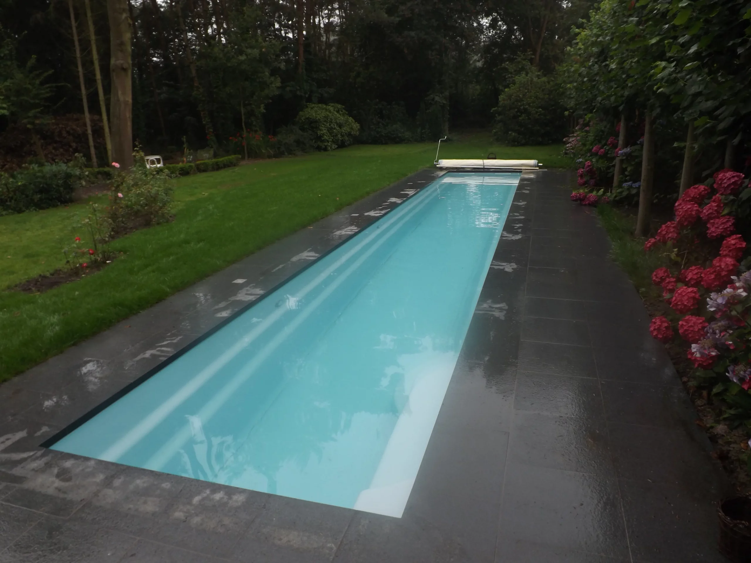 Mon de Pra ha diseñado la piscina de natación perfecta para tu casa. Se trata de un carril de natación monobloque con forma alargada y estrecha. Encuentra el tamaño ideal para tu jardín.