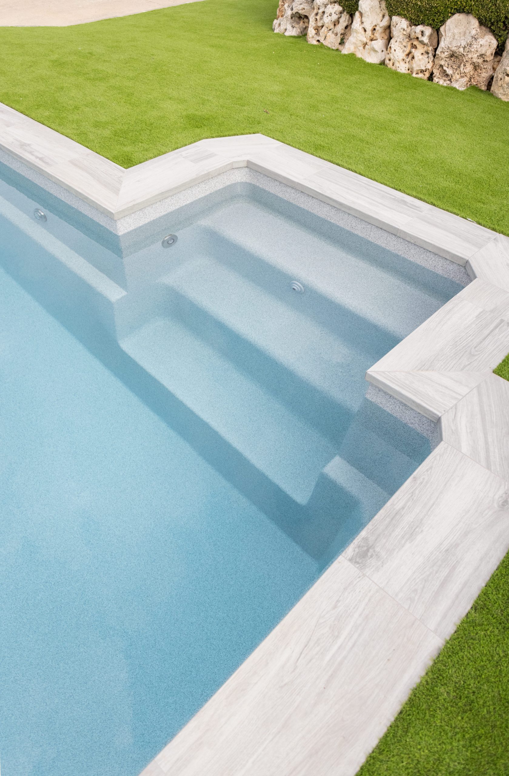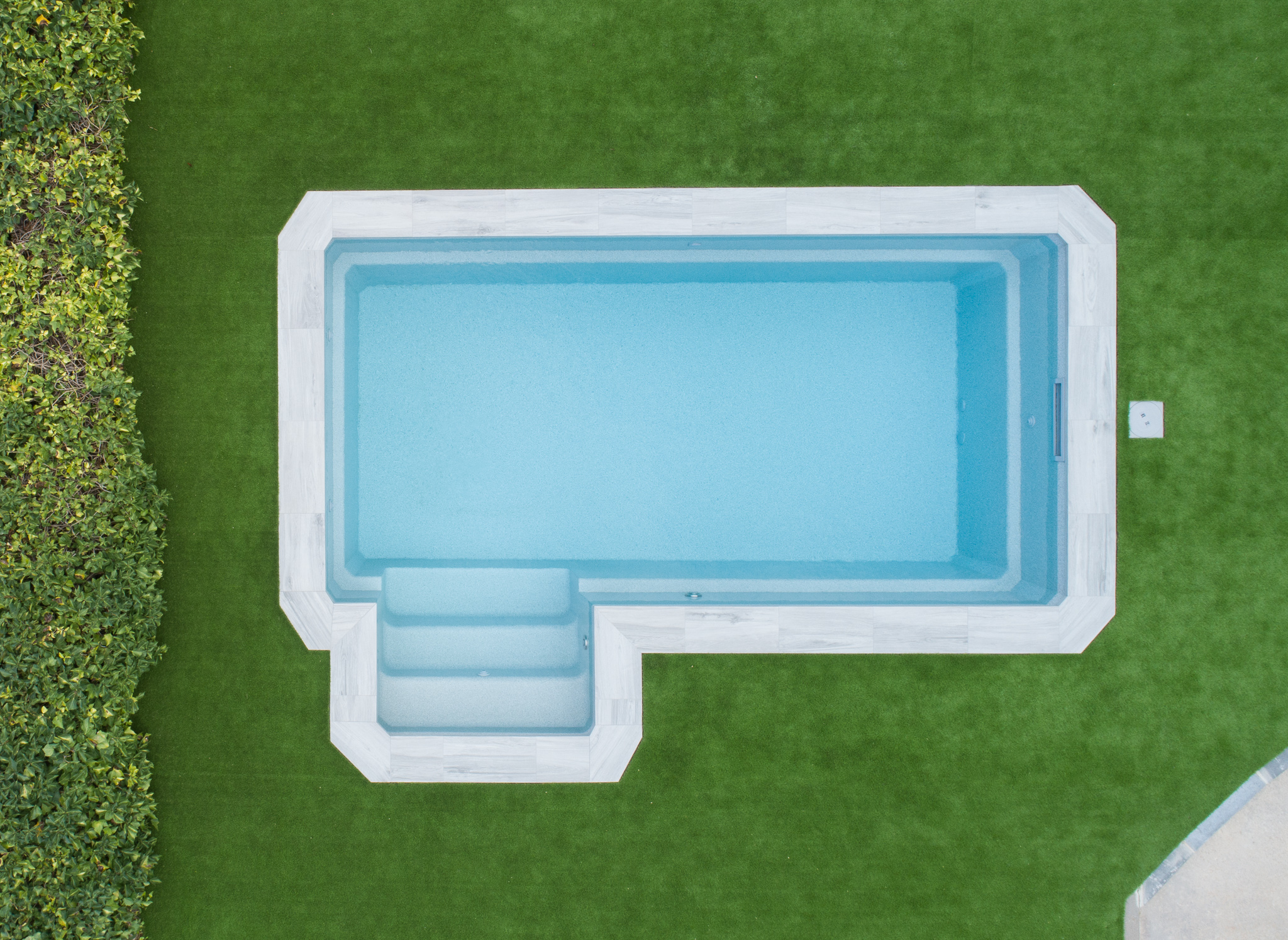 Elegante piscina de dimensiones reducidas. Disponible con escalera frontal o lateral.