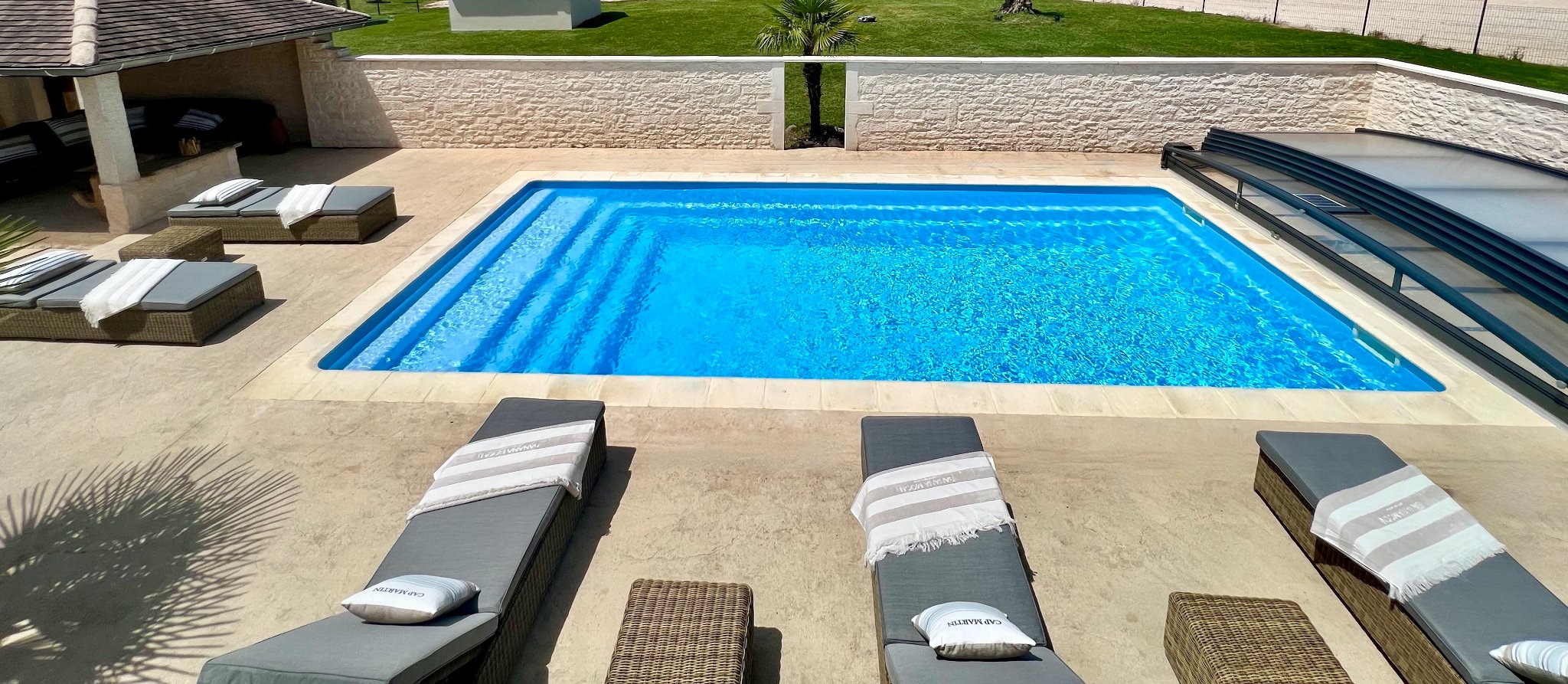 Con un diseño más clásico gracias a sus paredes verticales y ángulos más pequeños MdP Wide es la piscina con la bancada más ancha, proporcionando un espacio perfecto para relajarse. Su escalera antideslizante permite acceder a la piscina con total seguridad.